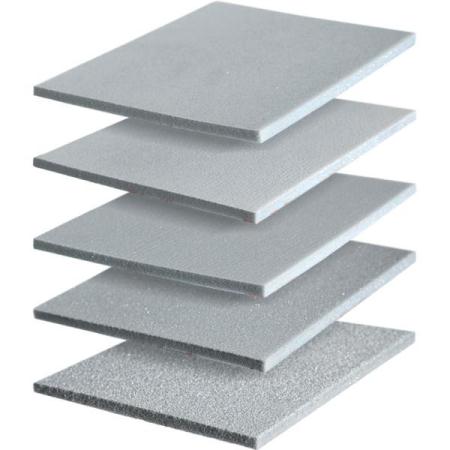 Brusná houba s použitím minerálů karbidu křemíku a oxidu hlinitého.